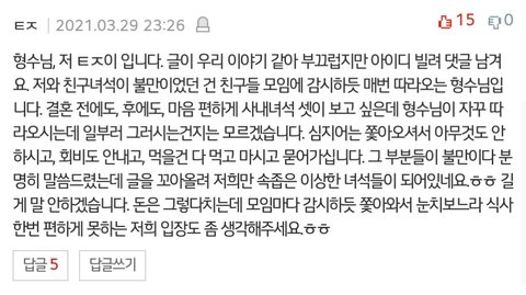 회비는 친구들 다 5년째 취준생이라서 남편이 90퍼 냈습니다
