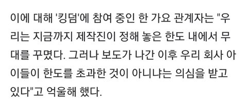 이 기사 내용이 콜라보따리 얘기가 맞으면 ㅇㅇ... 한도 넘긴 적도 없고 정해진 선에서 잘 지켰는데 갑자기 수중촬영 했다고 무대까지 스포당함 ㅋㅋ... ㅆ ㅣ발