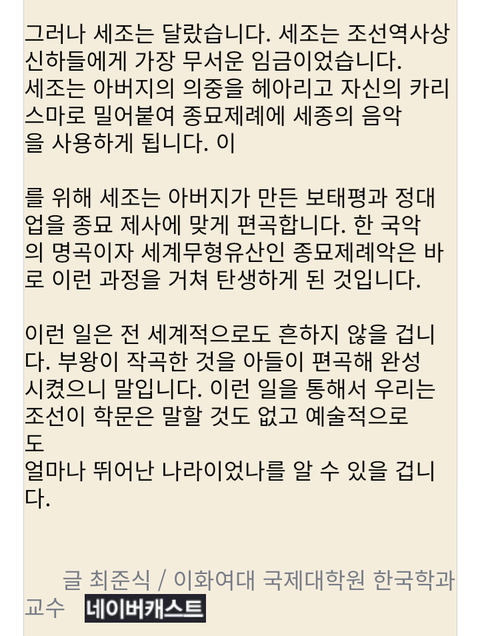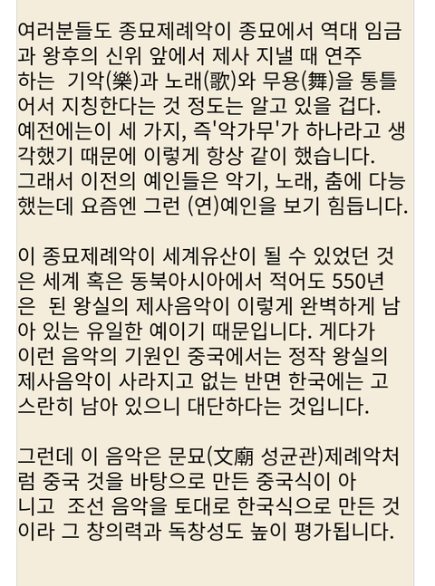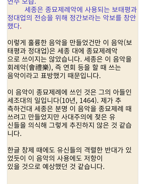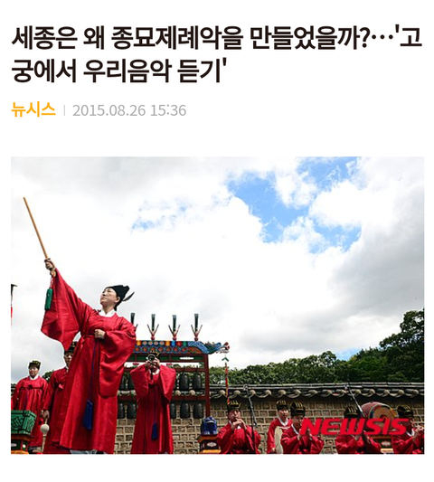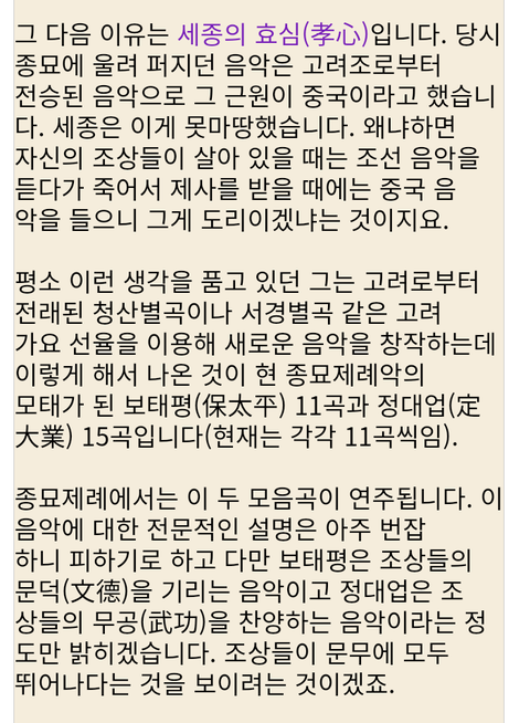종묘제례악은 세종대왕이 굉장히 신경써서 만드신 음악이야