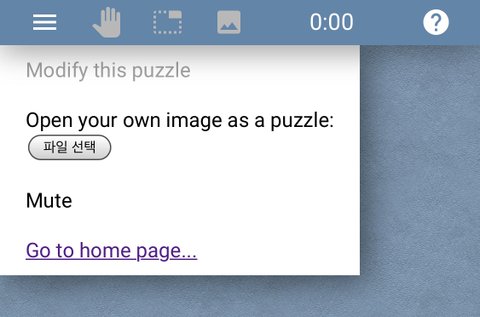 퍼즐 다 완성해서 또 하고 싶으면 그냥 그대로 왼쪽 상단에 있는 거 줄 세개 눌러서 사진 고르면 됨!