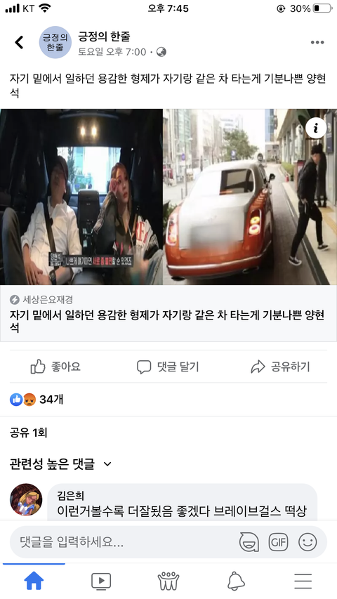 용감한 형제 좋아함 그러나 다른 문제로 yg 나간거고