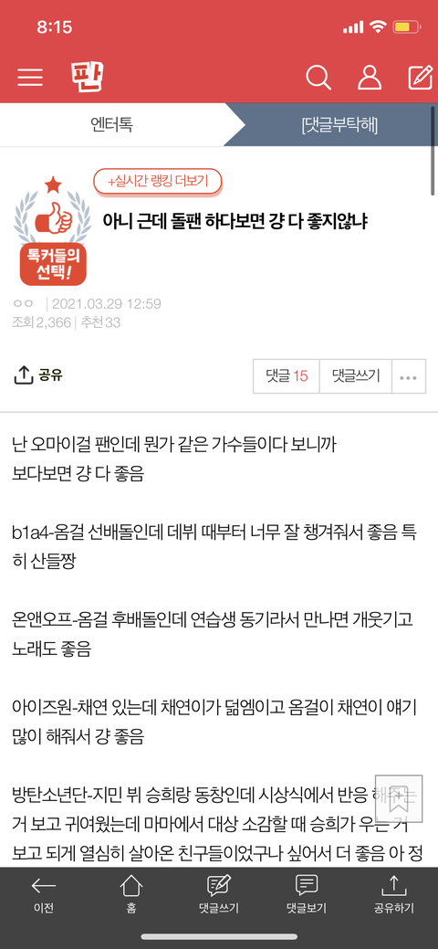 키야 우리 두대장 평판 오졌다 ㅜㅜ 뿌듯 댓달러 ㄱ ㄱ 사진에는 없는데 본문에는 윤두준 있음 !! 제목 보여주려고 잘린 사진 가져옴 ㅜ