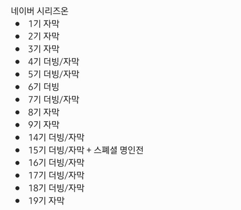 6기는 무조건 더빙만 있는 것 같고 10기~13기가 없음 (라프텔 제외)