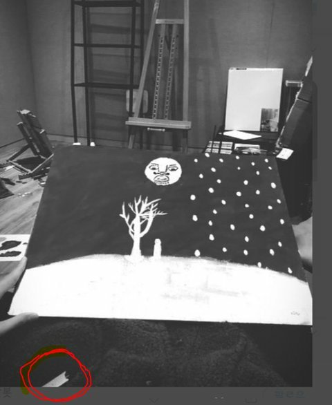 방탄 뷔 사진에 이거 뭐라는 거야
