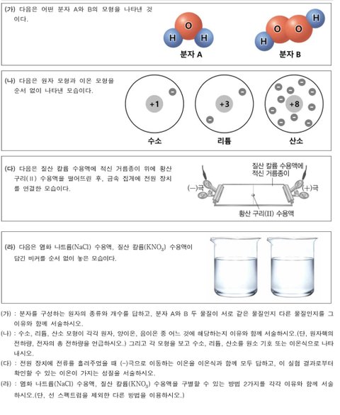 라 : 1- 불꽃반응색으로 알수있다. 왜냐하면 물질을 불꽃에 넣었을때 금속원소 종류에 따라 특정한 불꽃반응색이 나타나기 때문이다 2- 앙금생성반응으로 알 수 있다. 왜냐하면 수용액에 들어있는 이온을 알 수 있기 때문입니다
