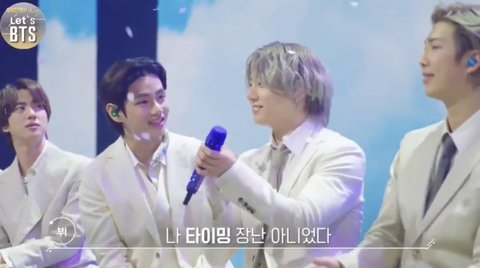 뷔가 타이밍 딱맞았다고 신나서 지민한테 말하는데