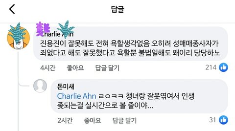 걍 조카 답없음 그 여자가 성매매한것도 잘못이지만 구라친 진용진이 잘못한건 죄 물을 생각도 없음 ㅋㅋ 진용진 잘못이 뭐든 그냥 잘못걸렸다 생각하라고 하는 중