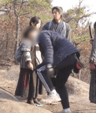 촬영 끝난 후 발판에서 내려오는 평강