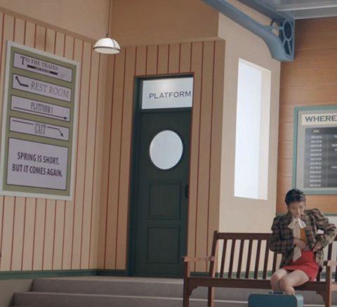 다시 플랫폼에 돌아와 지나간 기차(아이유의 20대)를 보고 손을 흔들며 인사함