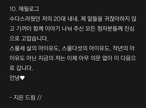 (스물아홉에 낸 노래 에필로그 가사 중)
