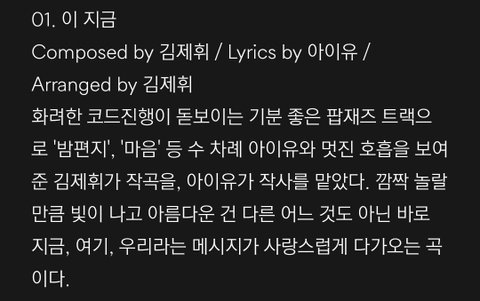 (팔레트 앨범에 있는 이 지금 곡 소개)