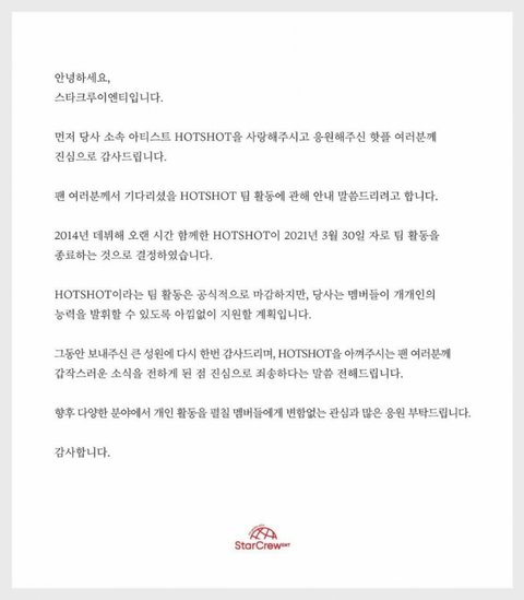 핫샷 데뷔한지 7년이라 계약종료할때 된거같은뎅