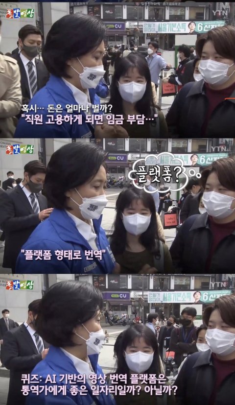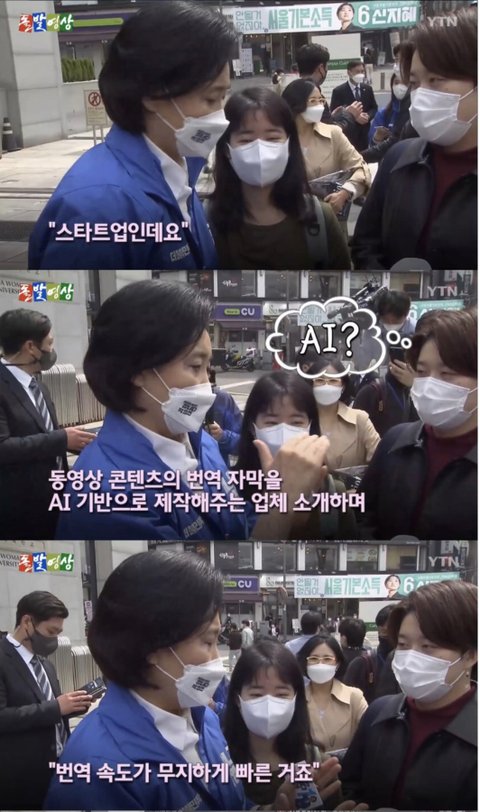 박: 스타트업인데 AI(기계)가 사람대신 통역해주는거임 이러면 인건비도 줄어든다(속뜻:니네 일자리 더 없어지게됌)