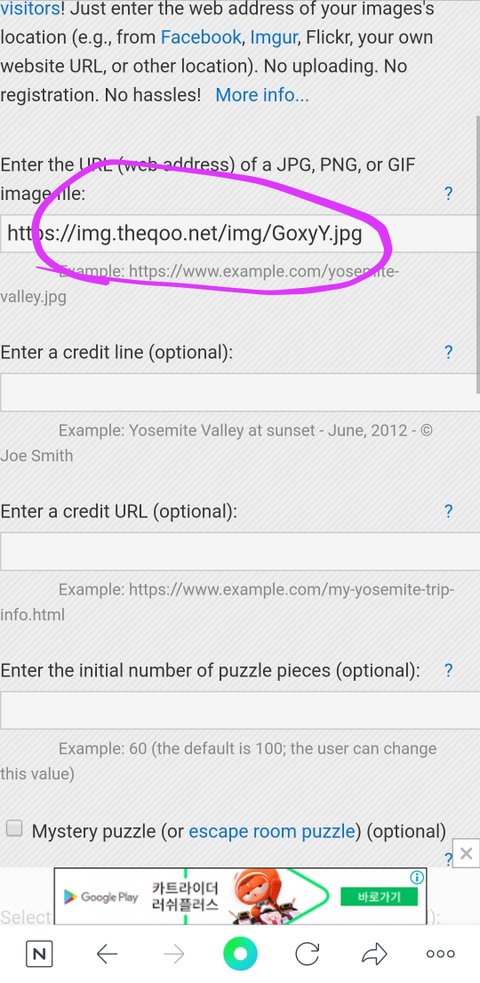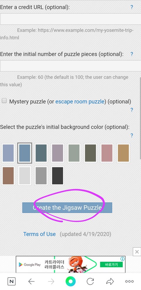 그리고 퍼즐 만들 수 있는 사이트 들어가서(댓글에 올릴게) 스크롤 내려서 저거 눌러