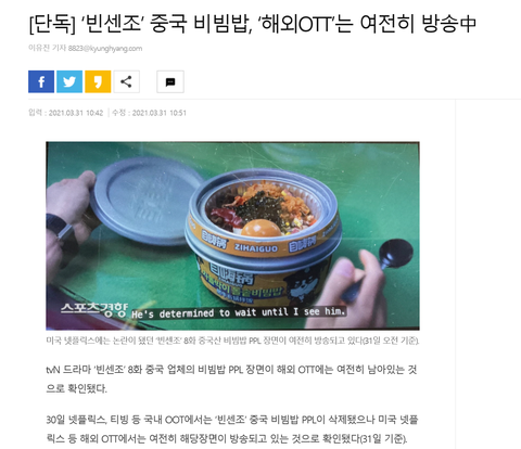 빈센조에서 중국 도시락 PPL한 것도 해외에서 그대로