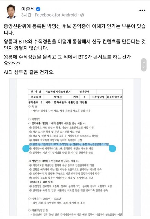 박영선 지지율 떨어지니깐 공약에 BTS넣고 중국표달라고 구걸하고 ㅋㅋㅋ