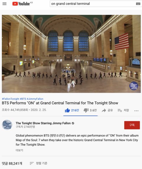 방탄 On 뉴욕 grand central terminal 무대 다시 올라옴