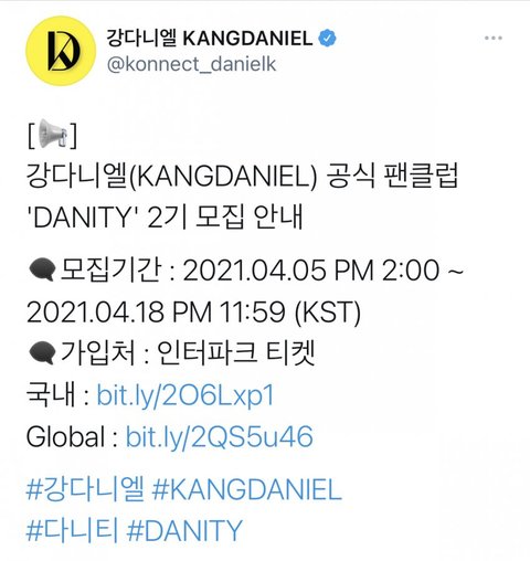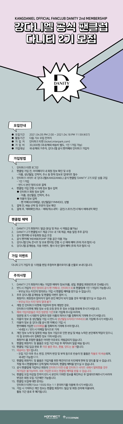 강다니엘 공식 팬클럽 DANITY 2기 모집 안내