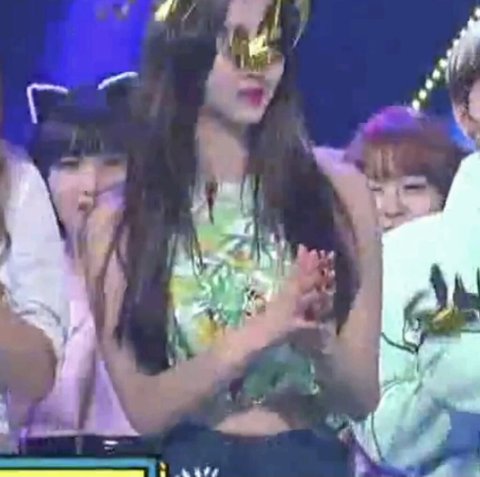 앞에서 씨스타 보라가 레이디스코드 추모 할때 전 멤버 율희와 현 멤버 유정이 웃고 떠드는 장면