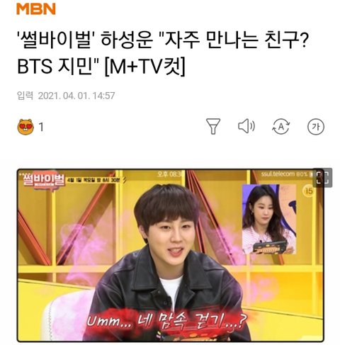 하성운하고 방탄 지민이 우정 좋아.