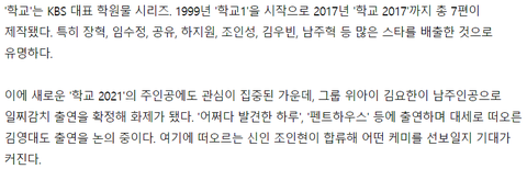 그리고 오늘 뜬 기사로 <학교 2021> 여자 주인공이래