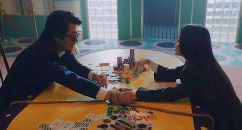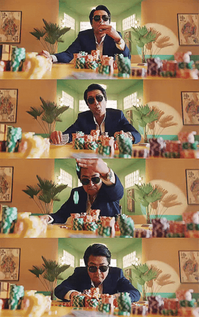 뮤비에서 영화 타짜 '아귀'의 모습으로 나왔는데