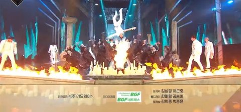 -> 백업댄서들 탈 쓰고 있고 칼 들고 있어서 전쟁 컨셉 확정
