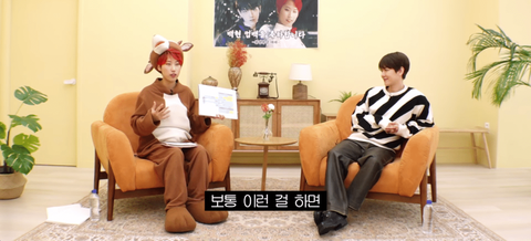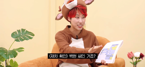 백현: 그러면은 밑에다가 적는 척 있잖아요 "그럼 내가 갈까?"