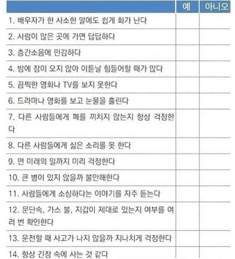 이 중에 7개 이상이면 예민한 사람이래요