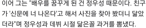 친구들이 신문에서 정우성을 보고 너 아니냐고 할정도였다고..