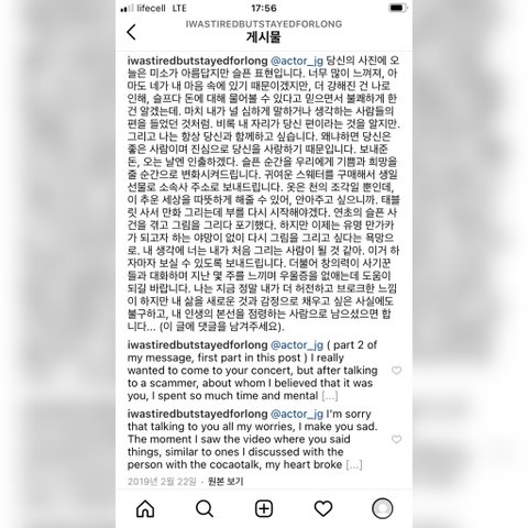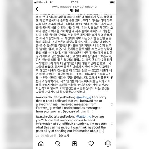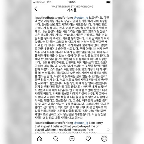 내 안에 품고 있는 원석은 다이아몬드이니까" 라는 글을 올리고, 그녀의 계정이 해킹당했다며 논란이 된 게시글과 함께 그녀의 계정을 삭제했습니다 청구.
