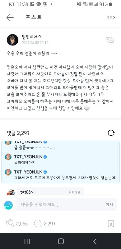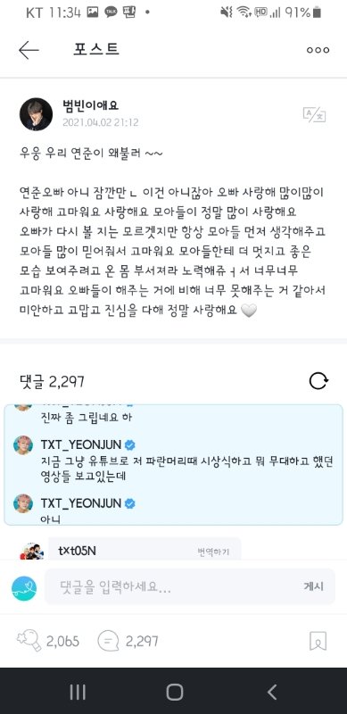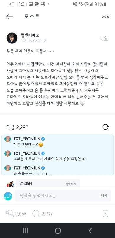 연준이가 달아준 위버스 댓글