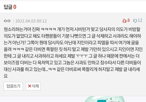 댓글보니까 먹금도 못하고 걍 찐더비 아니고 트위터 하는 애들같음.. 찐더비들은 킹덤 스밍돌리고 사과하러 다니느라 지쳐서 상대하기도 힘듦 오늘 더비 생일인데 좀.. 좋게 넘어가지 그냥 팬톡 의견 아님 더비들 다 팬톡에 있어 댓글 팬톡 애들이 쓴 거 아니야...