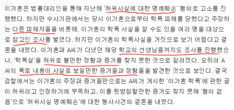 ‘허위사실에 대한 명예훼손’ 혐의로 고소를 진행했었음.