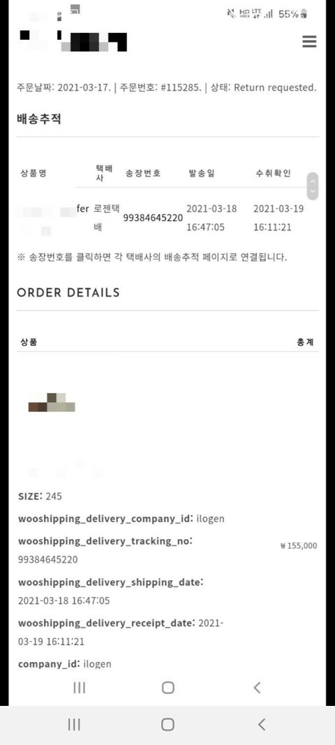 2021.03.19. (16:39) ㅡ 공식쇼핑몰에서 반품 신청