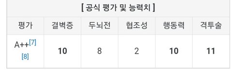 공식 능력치를 살펴보면 두뇌전은 아르민 보다 2점정도