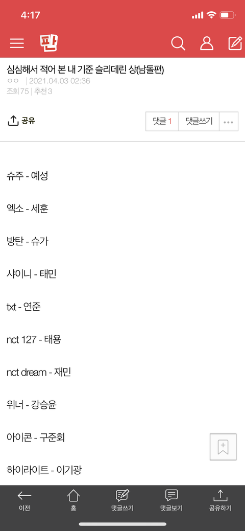 팬톡 목록보기