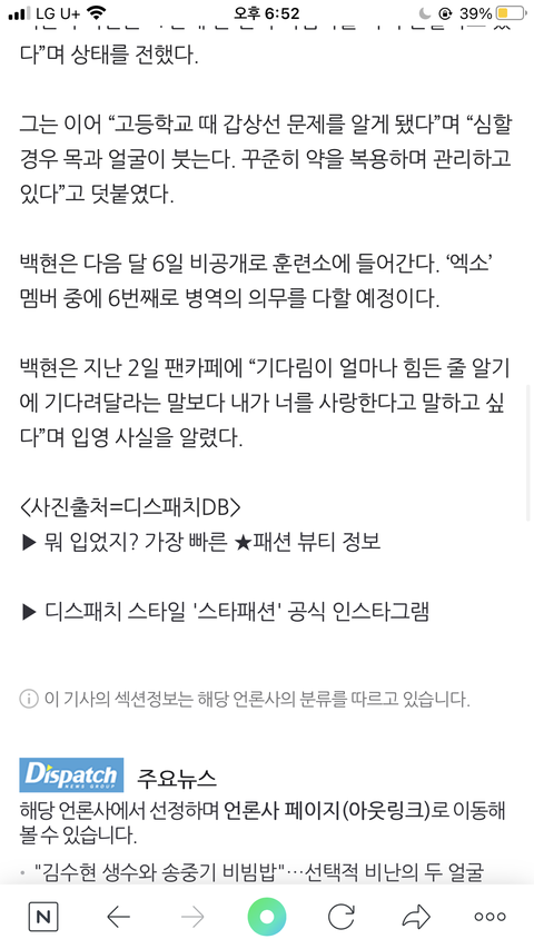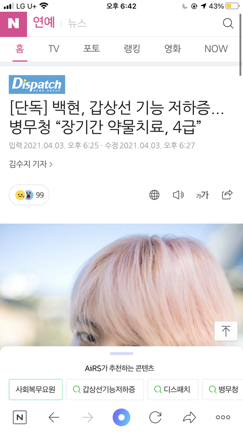 백현이 공익 이유가 갑상선 때문이래ㅠ