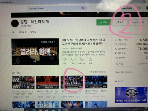 네이버에 더보이즈 킹덤 검색하고 분홍색 형광펜 표시한 곳 클릭하면 돼!