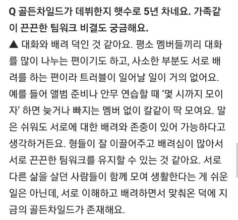 음 말이 길어지는데 한마디로 모든 멤버들이 서로를 '골차에 없어서는 안되는 사람'으로 생각하는게 잘 느껴짐