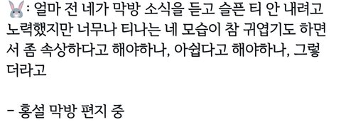 다인원 팀이고 연생기간도 다 다르고 다른 소속사에서 온 친구, 연생기간이 엄청 긴 친구부터 엄청 짧은 친구, 눈에 띄게 외향적인 멤버 내향적인 멤버 등 정말 다 다르기에 골차 모든 멤버들이 겪었을 스트레스와 부담이 컸을거라 생각해