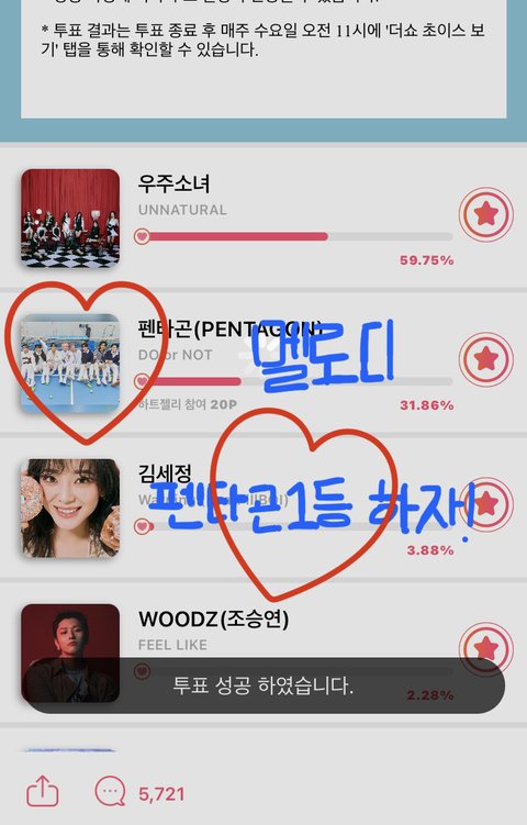 이번에 멤버분들이 브이앱에서 킹덤도 지주 언급 해주셨다고 들었어! 펜타곤이랑 내 본진이랑 나우도 같이 하고 친목도 평생 응원할께! 그리고 유니버스도 이번 킹덤 스밍 도와줘서 고마워 ㅠㅠ!!! 진짜 사랑해 흐앙 ㅠ 진짜 펜타곤 우승하자!(이제 다시 투표하러 갈께 한시간에 5번 밖에 안되는거구나...열나게 투표할께!!)