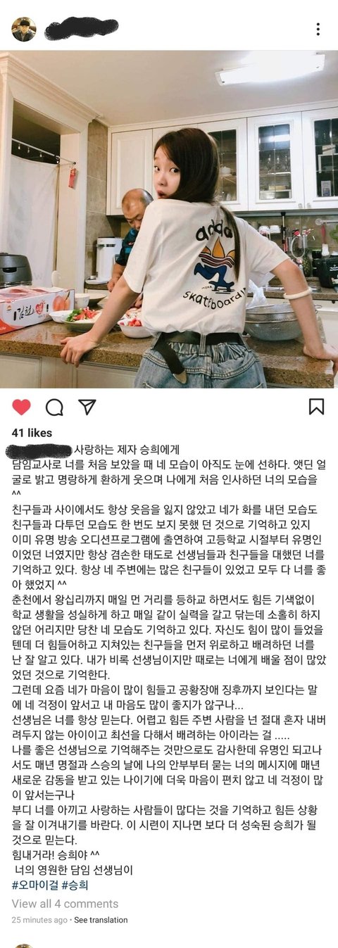 오마이걸 승희 담임쌤이 글 올렸네