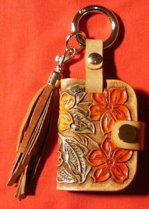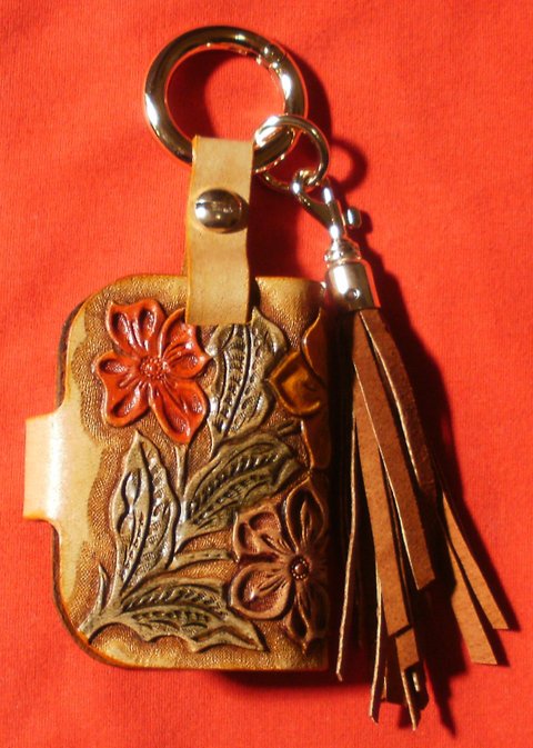 가죽에 플라워 디자인을 카빙하여 제작한 자동차 스마트 키 케이스입니다.(마디샤)