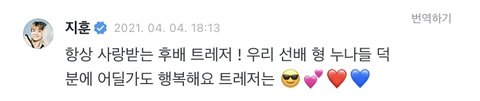 박쥰 하트색깔 선배님들 상징색으로 해놓은것봐.. 진짜 센스 어쩔이야ㅠㅠ 세심그자체 .. 박지훈 안좋아하는법 그거 몬데요 대체!!!! ㅂㅍ핑크 ㅇㅇㅋ빨강 ㅇㄴ파랑
