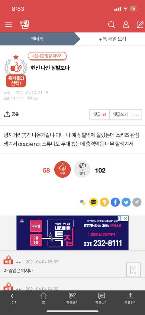 비추 그런것도 박지말고 최대한 누르지말자 ㅠ 화이팅