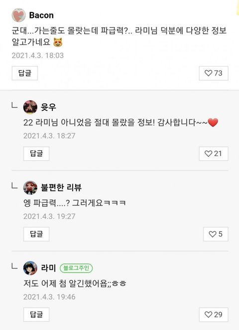 군대간다고 파급력이 있었냐 가는지도 몰랐단 반응이 대다수던데