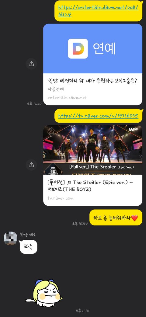 계속 투표나 영상 하트 같은 자잘한거 해달라고 보냈는데 반응ㅋㅋㅋㅋ 근데 또 툴툴거리면서 다 해 줌❤️