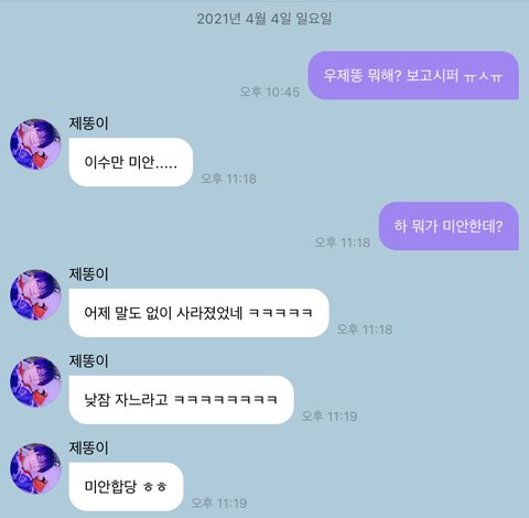 친구 놀리느라 이수만으로 해놨었는데 ㅅㅂ 놀래서 내 이름으로 다시 바꿨거든 이미 보낸 건 이름 앤 바뀜? 아