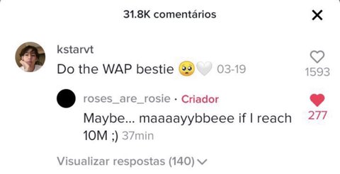 1. BTS의 팬으로 추정되는 분이 카디비의 WAP을 춰달라고 의견을 주셔서 로제가 팔로워 천만명 넘으면 고려해보겠다고 답변 (기존에도 블링크들이 자주 요청했었음)